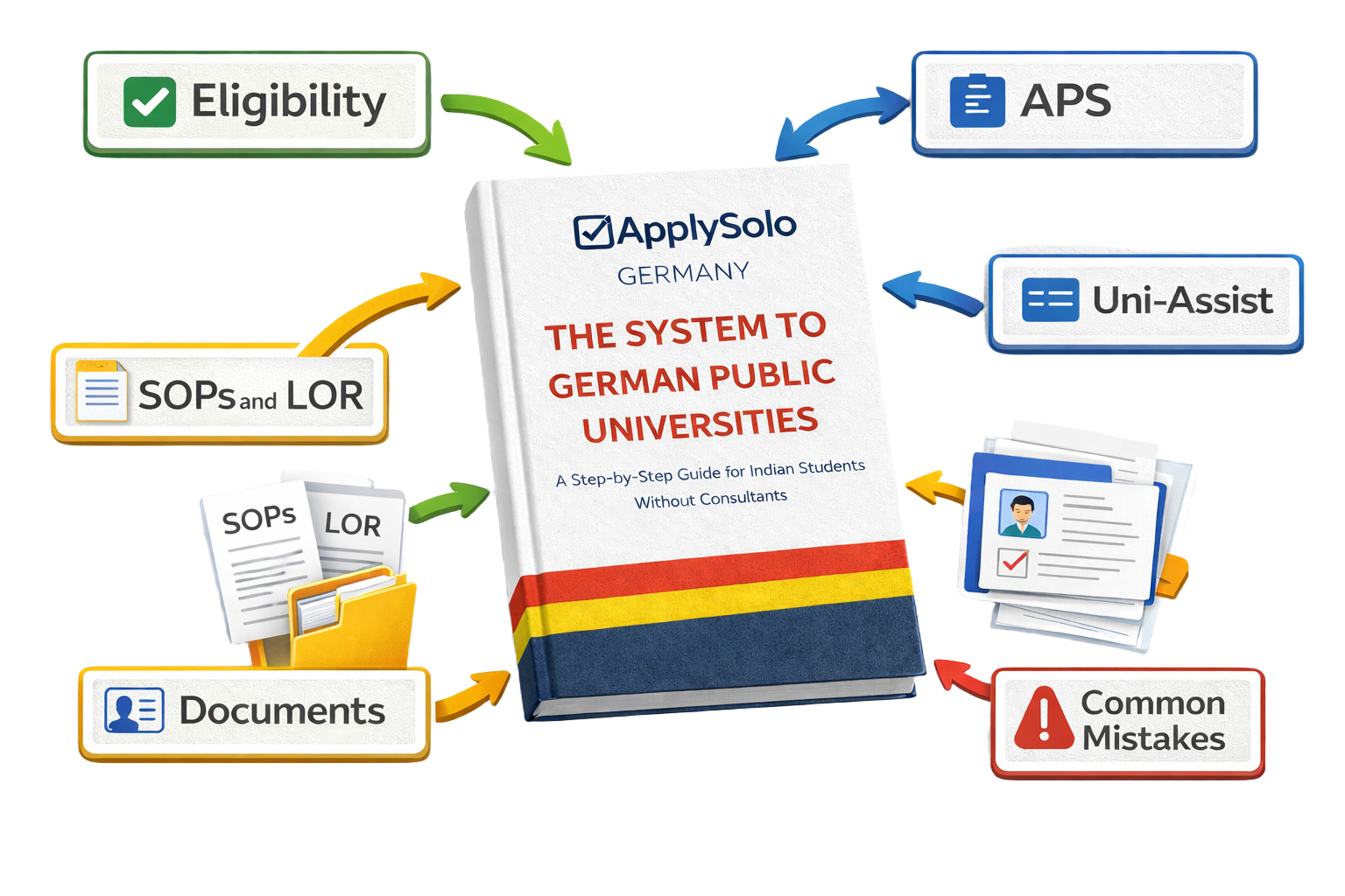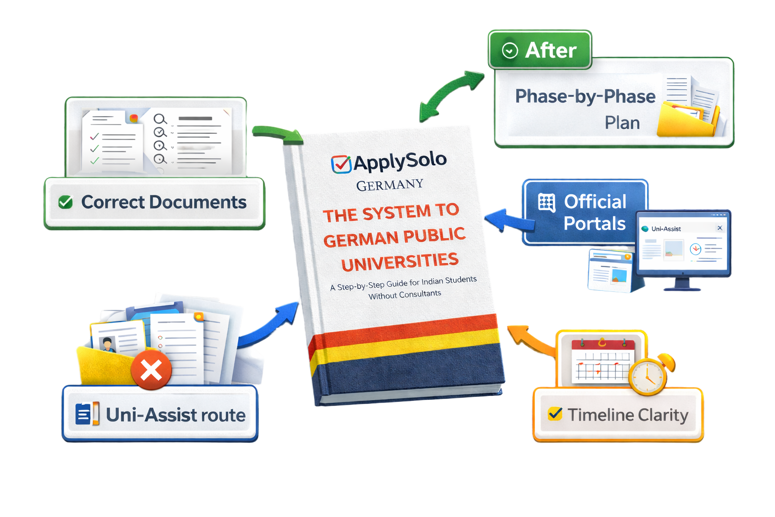 ApplySolo Germany is a step-by-step admission operating system designed for Indian students who want to secure admission into German public universities independently.